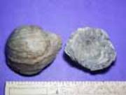 Description: The bottom (left) valve is larger than the flatter upper (right) valve. The bottom valve is strongly convexed and