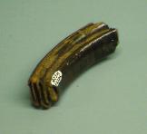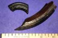 length of the tooth, which is slightly curved, looking similar to a curved horse tooth. The top of the tooth has a ridge that