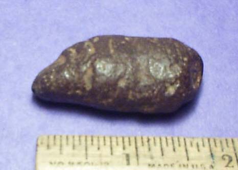 general shape not unlike the stream worn gravel except that the top is rounded and the bottom is somewhat pointed. Most