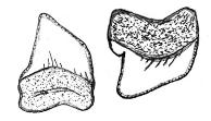 lateral teeth of each species, but they are smaller in size and have a greater curvature towards the notched side.