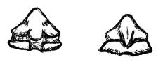 and are very similar in shape to the main cusp of a sharks tooth. The roots are very robust and have a square outline when