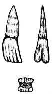 Typical rostral tooth a. Side view b. Front view c. Bottom view
