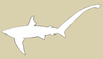 day threshers are open water sharks that feed on small to medium sized schooling type fish. Their bodies were somewhat