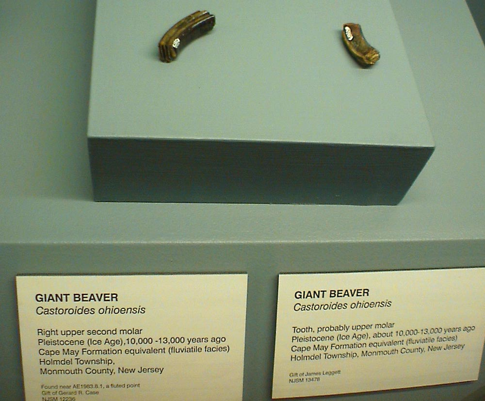 Description: The giant beaver, Castoroides ohioensis, is represented by its large teeth. To date there have been only a