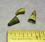 Description: The gavial-like "crocodile" is represented at Big Brook by teeth, dermal scutes, vertebrae, other scrap bone, and