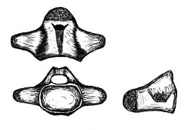 Complete Crocodile Vertebra a. Top b. Back c. Side